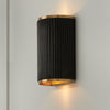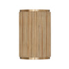The Donovan Sconce pairs artisan texture with mid-century modern style. Formed into a semi-cylinder, the White Wash or Black Stain fluted mango wood shade evokes a natural elegance, while the Matte Brass details add a warm glow.