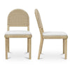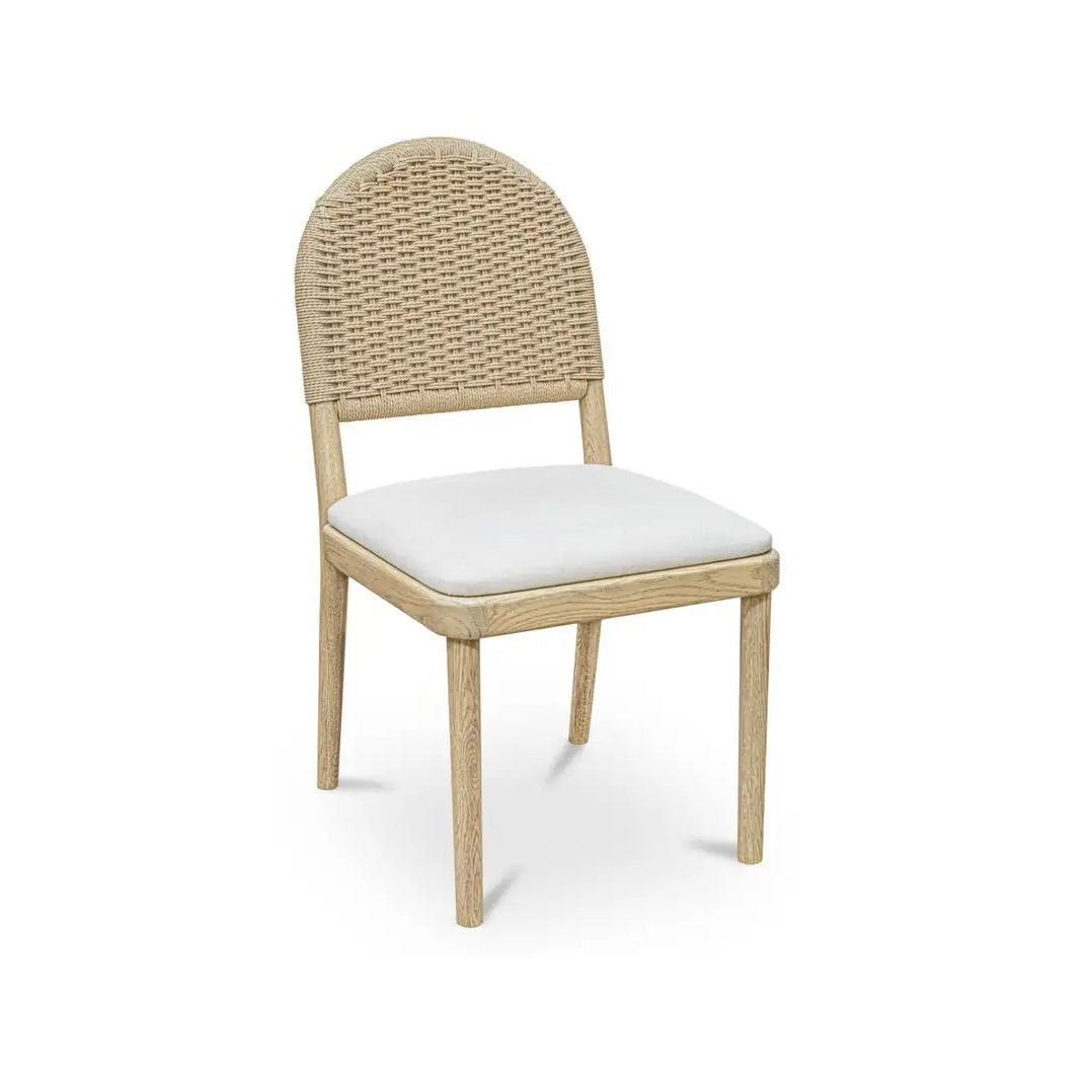 A chair that makes the table. The Claire Chair combines a solid oak frame with an arched paper cord back and a cushioned seat in soft beige upholstery. Rounded legs and corners refine the silhouette, while the handwoven texture adds artisanal warmth. Designed for everyday comfort and designed for timeless appeal.