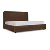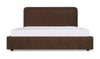 A bed with a hidden trick. The Simon Bed features a rounded silhouette with piped detailing, upholstered in brown polyester for warmth and durability. The full footboard pulls forward to reveal storage divided into two panels, keeping essentials organized without clutter. Built with engineered wood, solid wood, and MDF, Simon turns practical storage into part of the design story.