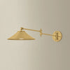 Old meets new in the swing-arm Lithgow sconce. This wall-mounted, antique-inspired design brings a timeless elegance to book nooks and bedsides. Finished in Aged Brass, the metal frame includes a swivel for more precise directional lighting. Thanks to efficient LED lamping, the shade is wide and shallow, providing a generous wash of light as Lithgow extends from the wall.