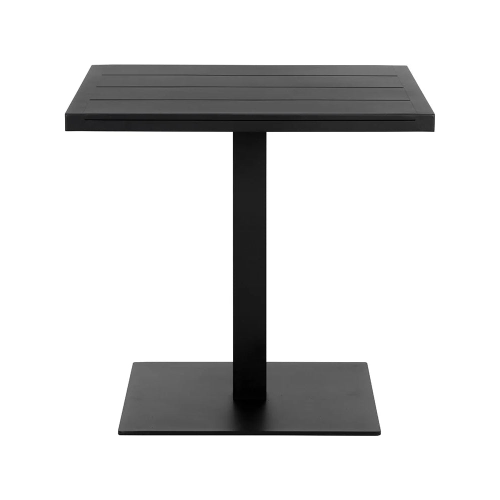 The Merano Bistro Table is a modern take on classic design. Sleek lines define its striking silhouette. Constructed from black powder-coated aluminium with a slatted table top.